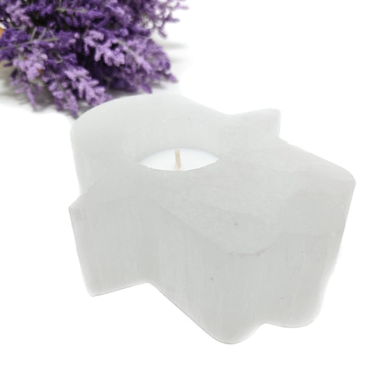 Selenite Hamsa Gypsum Crystal Tea Light Candle Holder Selenite Home Decor Gift