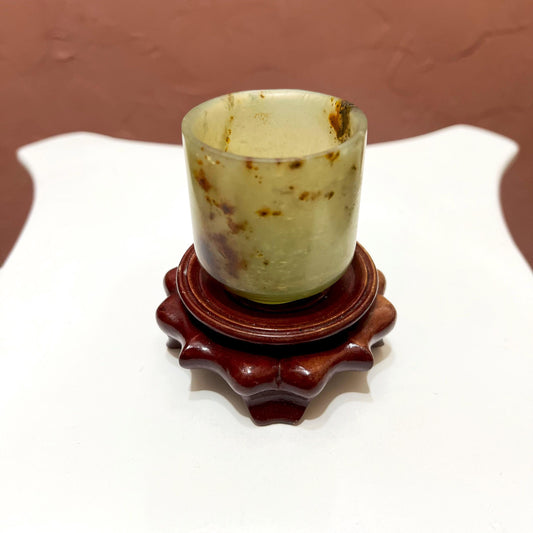 Gorgeous Vintage Chinese Collectible Jade Cup Brush Washer with Wooden Stand