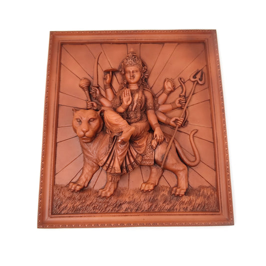 Durga Maa Wall Decor Wall Hanging Resin Plaque Goddess Durga On Lion 9.25"