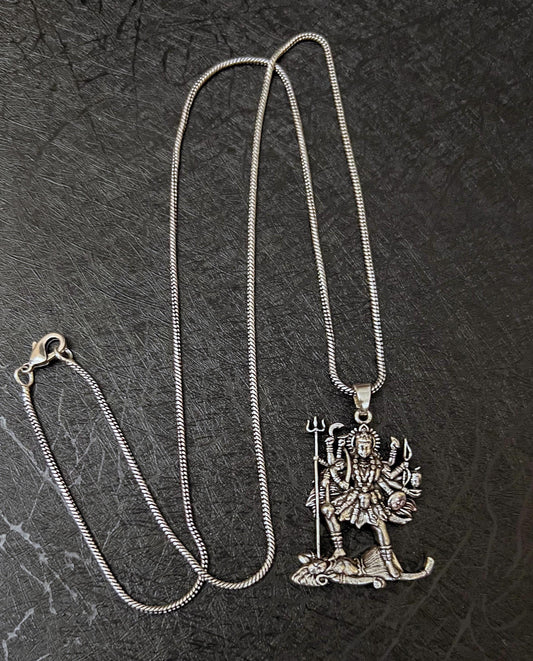Kali Maa Men’s Necklace • Silver Plated Brass Pendant • Hindu Goddess Amulet • Spiritual Men’s Jewelry