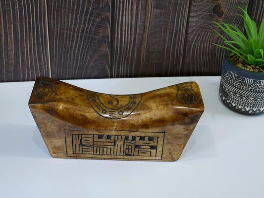 Vintage Chinese Stone Foo Dog Pillow Box Trinket Hand Carved - 9.5" Long