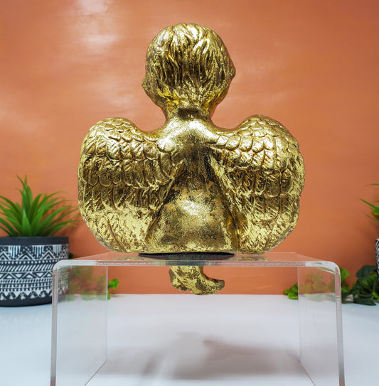 Gold Leaf Angel Cherub | Gold Paper Mache Baby Angel Mantel Statue Decor 7" Tall