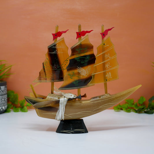 Vintage Chinese Carved Buffalo Horn Sailboat Schooner Ship | Collectible Home Decor 10" Long