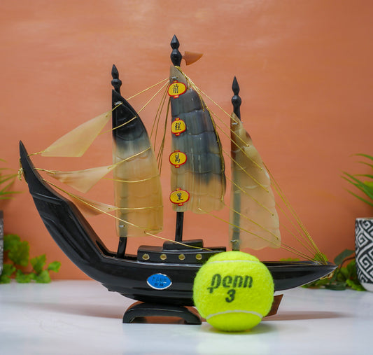 Vintage Chinese Carved Buffalo Horn Sailboat Schooner Ship | Collectible Home Decor 12" Long