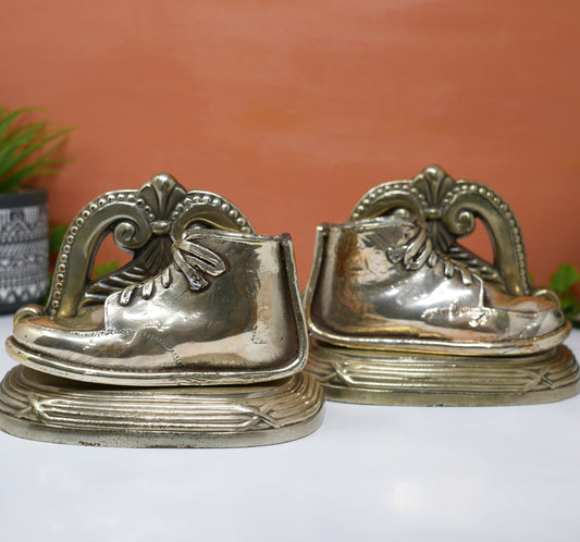 Vintage Metal Baby Shoe Bookend Pair - Home Decor Collectible