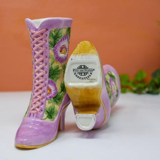 Vintage Fitz and Floyd Essentials Ceramic Laced Victorian Boot Vase - Set of 2