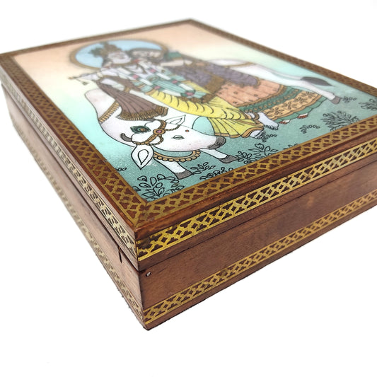 Rajasthan Jewelry Box Radha Krishna Gemstone Hand-painted Wood Trinket 8.25"