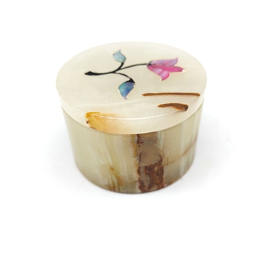 White Onyx Trinket Storage Jewelry Box Hand-painted Flower 2.5" India Handmade