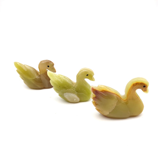 Onyx Stone Carved Swans 3 Beautiful Decorative Swan Statue Figurines 2" Long
