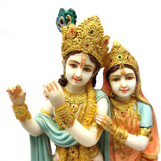 Radha-Krishna Embracing India Gods Marble Dust Hand-painted Statue Murti 15.5" Tall