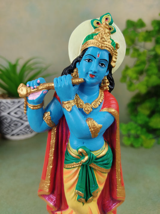 India God Sri Krishna Holy Ganges Clay Handmade Hand-painted Statue 7.25"