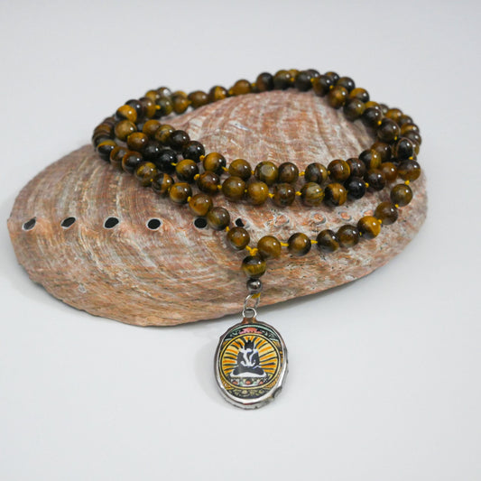 Tigers Eye Necklace - Shiva Shakti Amulet Beaded Gemstone Necklace Gift - 37" Long