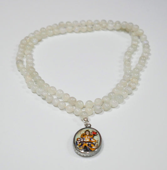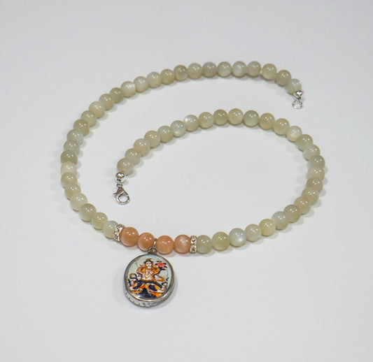 Moonstone Tara Mala Necklace - Tara Amulet with Moonstone Beads - Handmade Jewelry Gift 35"