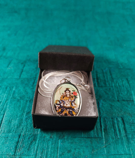 White Tara Pendant - 20" Silver Plated Snake Chain Necklace - Buddhism Gift