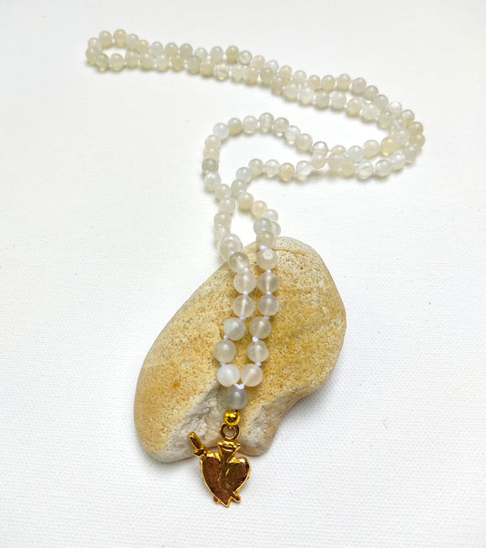 Sacred Heart Moonstone Mala Necklace 108 Beads | Spiritual Necklace Gift 32"