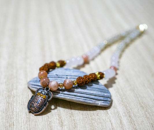Scarab Pendant Necklace | Rudraksha | Moonstone | Amazonite | Jewelry gift