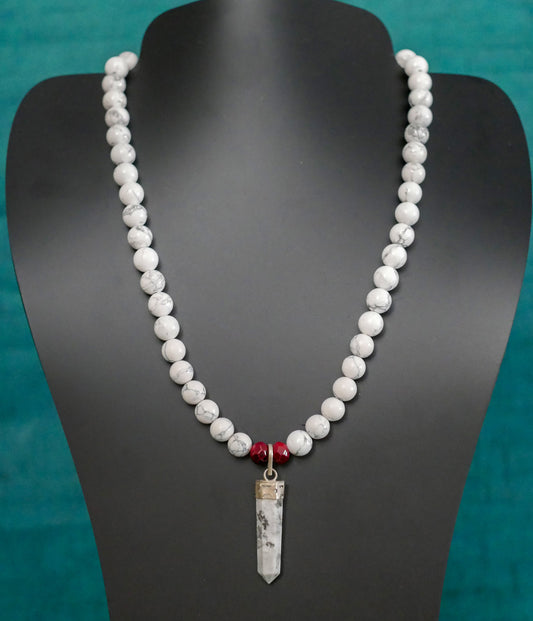 Pointed Howlite Serenity Beads Necklace | Handmade Custom Jewelry Gift 17.5" Long