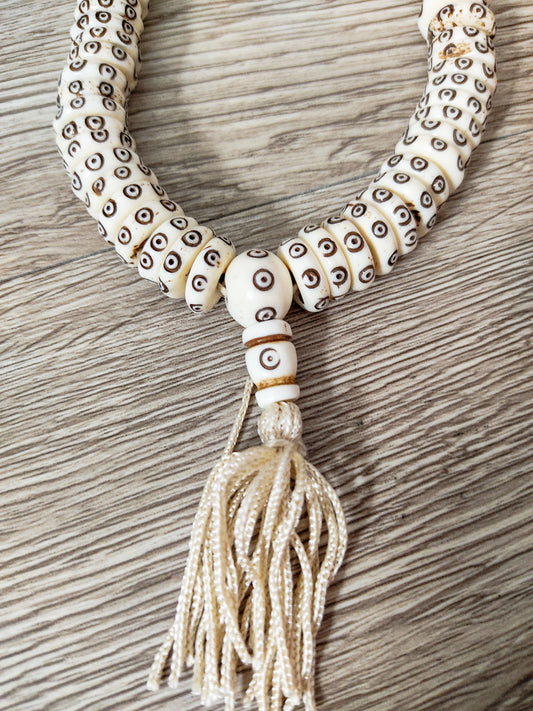 Tibet Carved Eye Handmade Japa Mala 108 Bone Prayer Beads - Meditation Beads