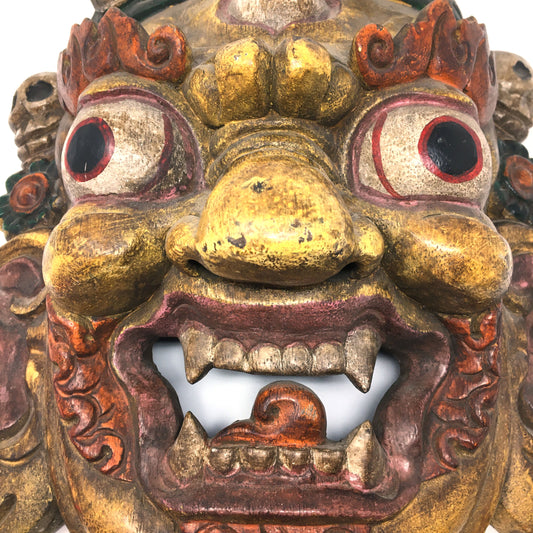 Wood Carving Buddhism Mahakala Mask Wall Plaque Hanging - Nepal Handmade 14"