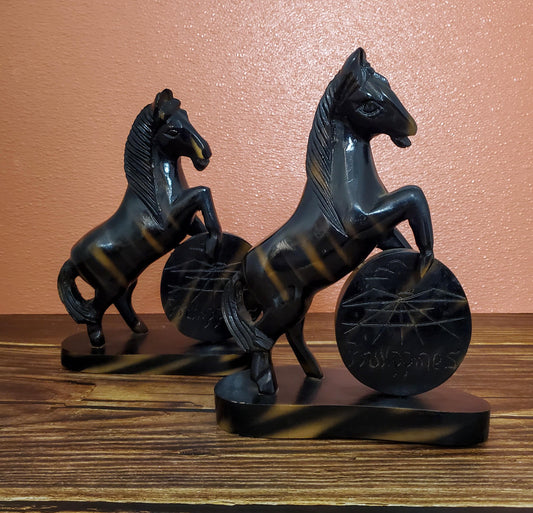 Vintage Wooden Stallion Horse Pair Statue Sculptures Made in The Philippines – Horse Home Decor Figures.