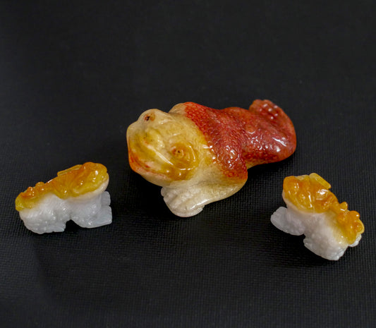 Vintage Chinese Carved Jade Frog Statue Figurines - Set of 3 Good Fortune Frogs
