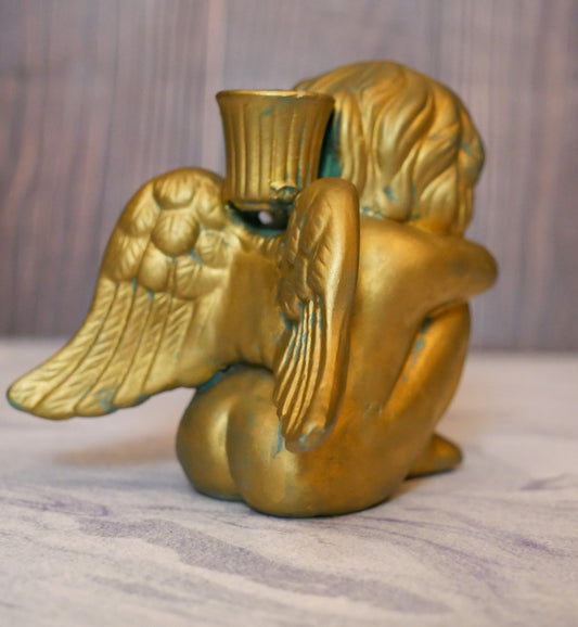 Pair of Ceramic Gold Cherub Candlestick Holder | Cherub Home Decoration Gift 5.25"