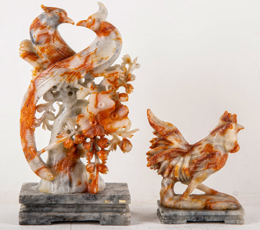 Chinese Natural Shoushan Stone Lovebirds Rooster Statue Sculpture Decor Set
