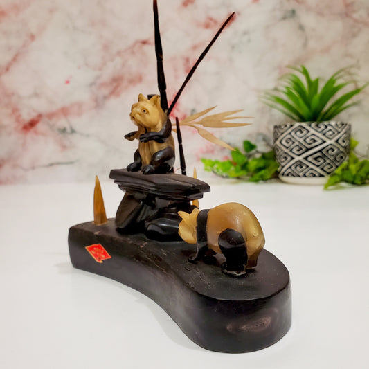 RARE - Chinese Horn Panda Bears Hand-carving Collectible Sculpture - 5.5" Long