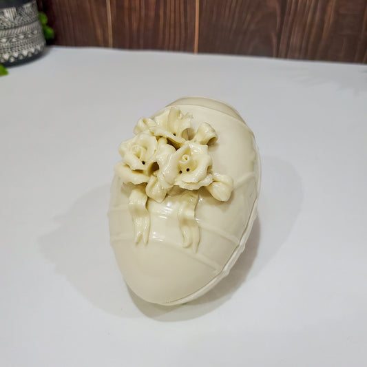 Porcelain Egg Shaped Floral Trinket Box. Off white Trinket Dish for Home or Wedding Decor - 4" Long