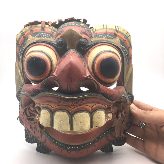 Hand-carved Hand-painted Tibetan Decorative All Natural Wood Mask 8.5"