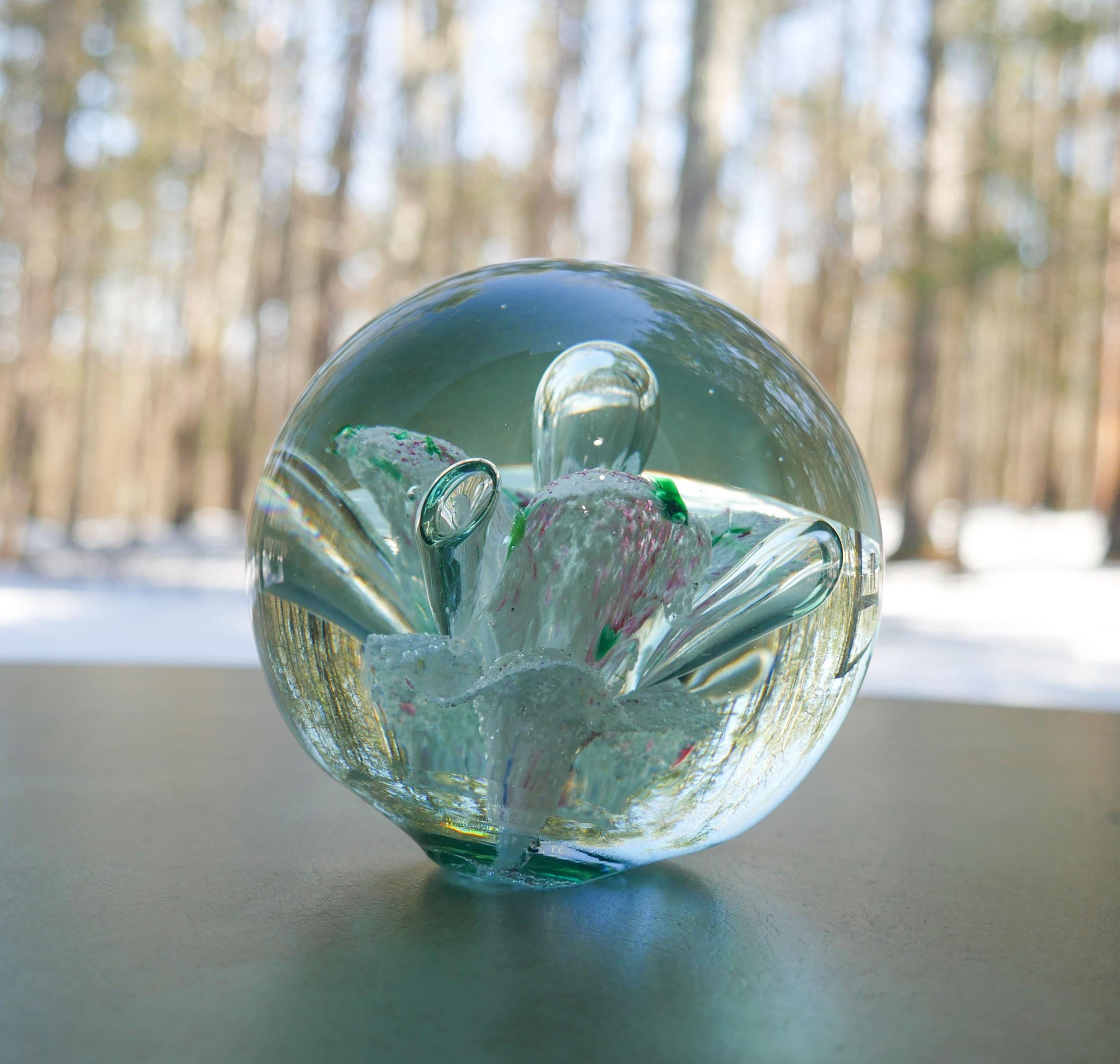 4" Heavy Vintage Hand Blown Art Glass Paperweight with Floral Inclusion
