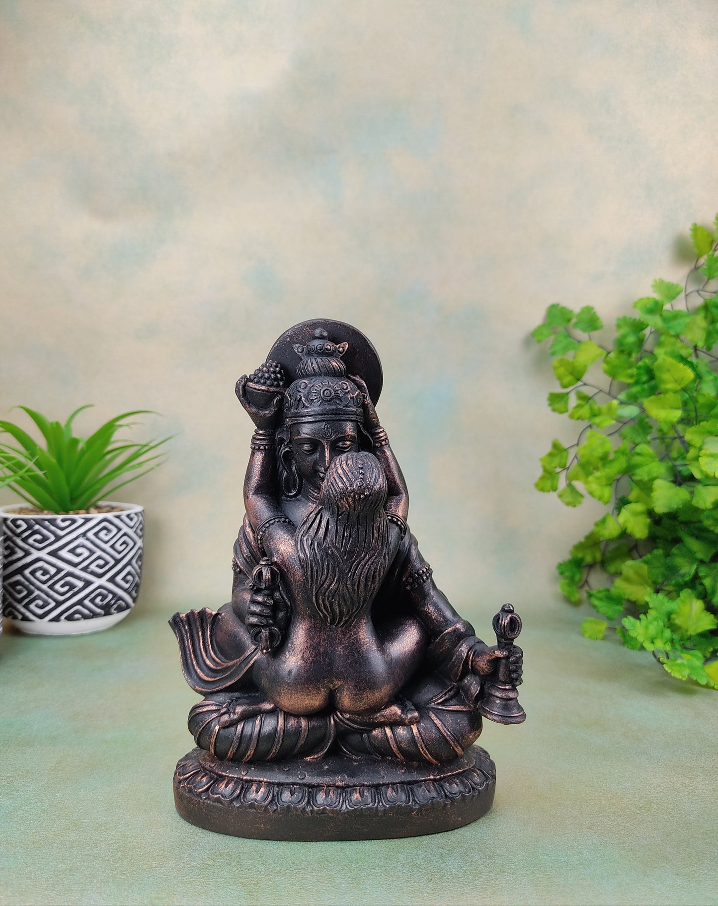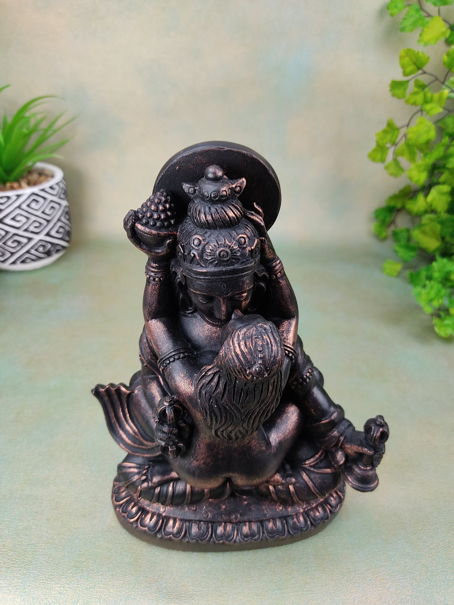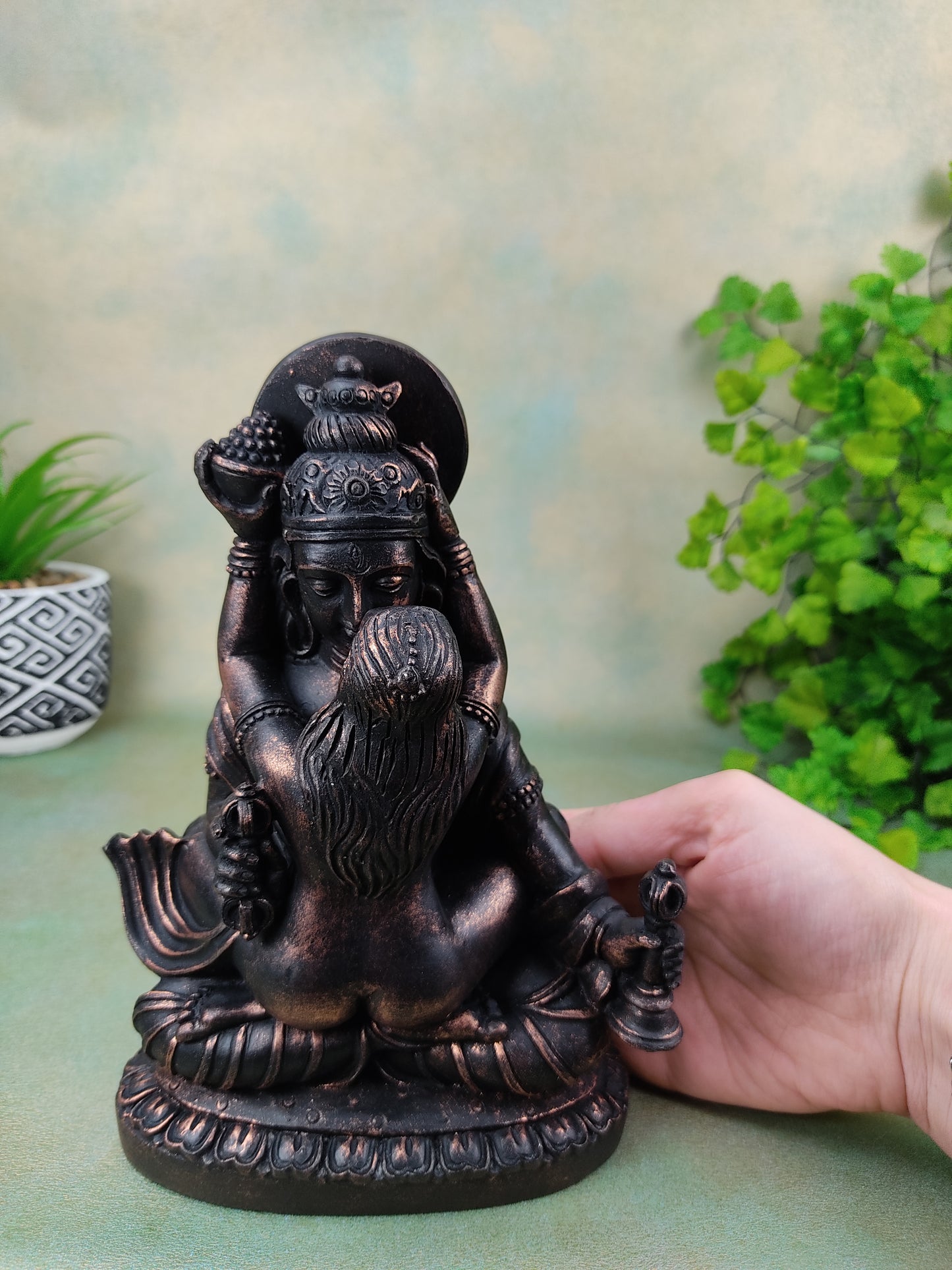 Amazing Handcrafted Sacred Ganges Clay with Antique Bronze Color Finish - Shiva - Shakti Hindu Yab Yum Tantric Statue Tantric Path to Enlightenment - The Two Together Symbolize the Union of The Male and Female Aspects Which Leads to Liberation and Enlightenment. In Tantra, The Universe Is Regarded as The Divine Play of Shakti And Shiva. Shakti Is A Power Goddess That Leads the Practitioner on A Quest for Spiritual Perfection and Magical Power.