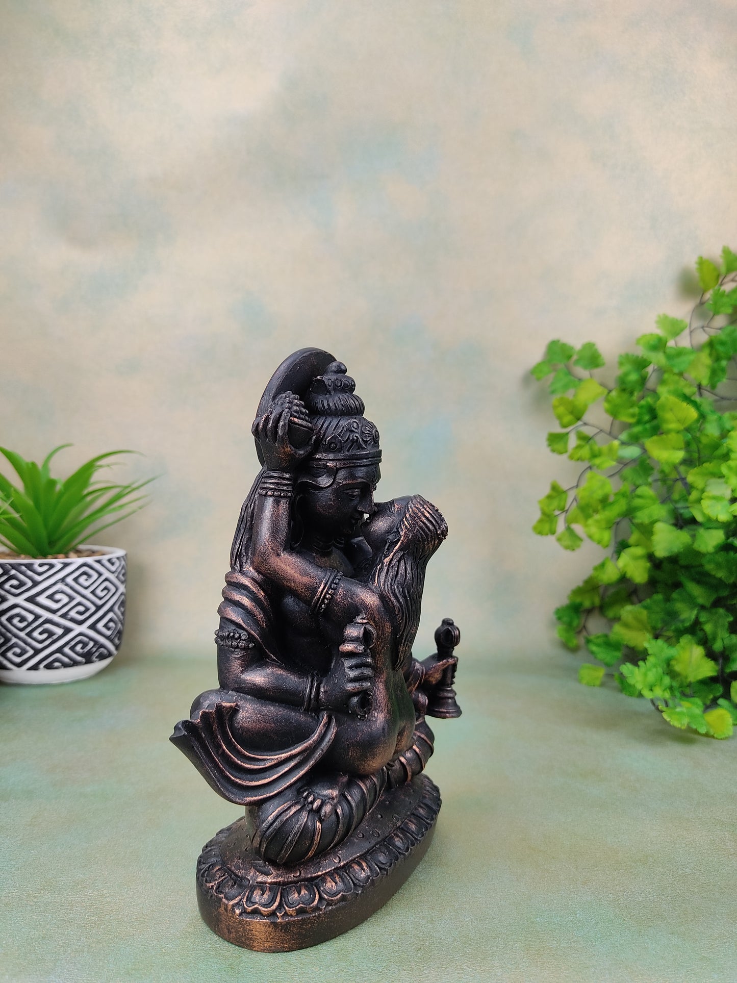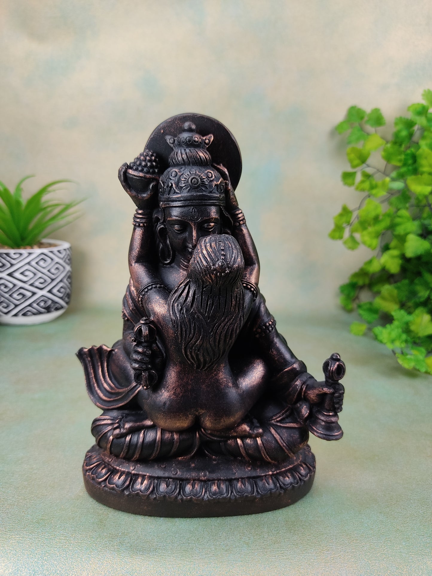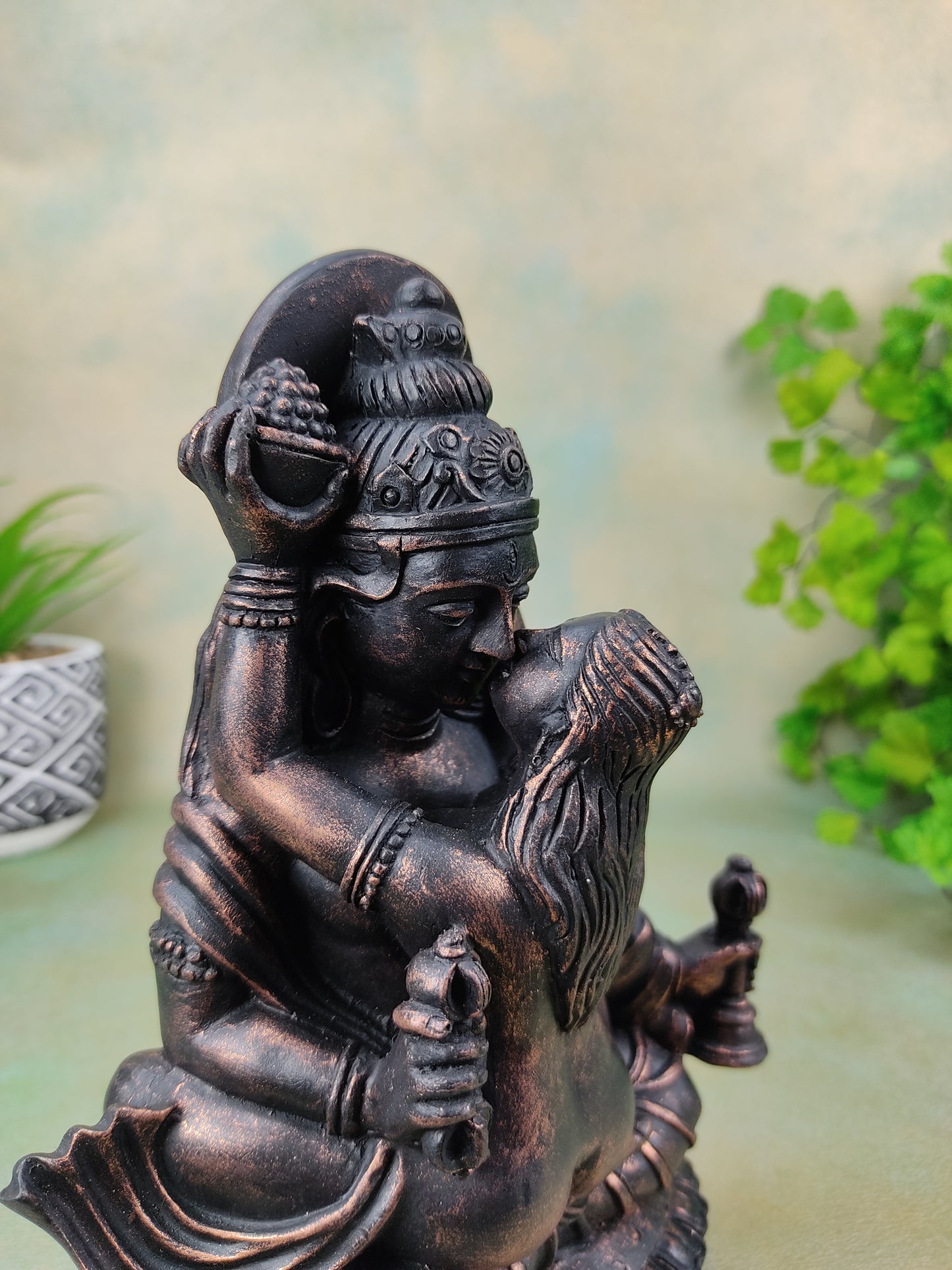 Amazing Handcrafted Sacred Ganges Clay with Antique Bronze Color Finish - Shiva - Shakti Hindu Yab Yum Tantric Statue Tantric Path to Enlightenment - The Two Together Symbolize the Union of The Male and Female Aspects Which Leads to Liberation and Enlightenment. In Tantra, The Universe Is Regarded as The Divine Play of Shakti And Shiva. Shakti Is A Power Goddess That Leads the Practitioner on A Quest for Spiritual Perfection and Magical Power.