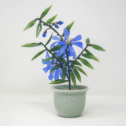 Vintage Chinese Glass Bonsai Tree in Celadon Pot Floral Sculpture Decor