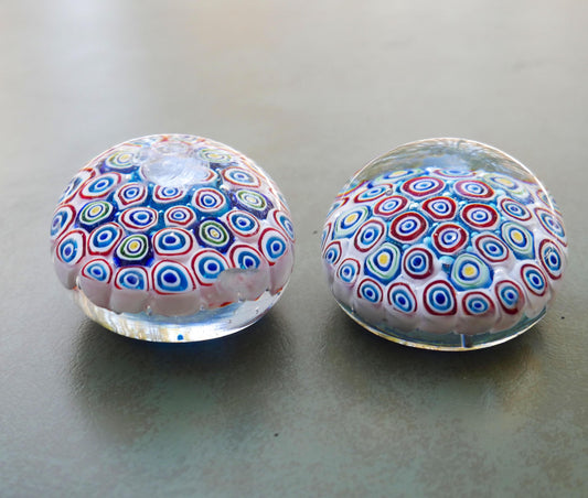 Pair of Vintage Art Glass Vintage Millefiori Paperweight | Collectible Decor