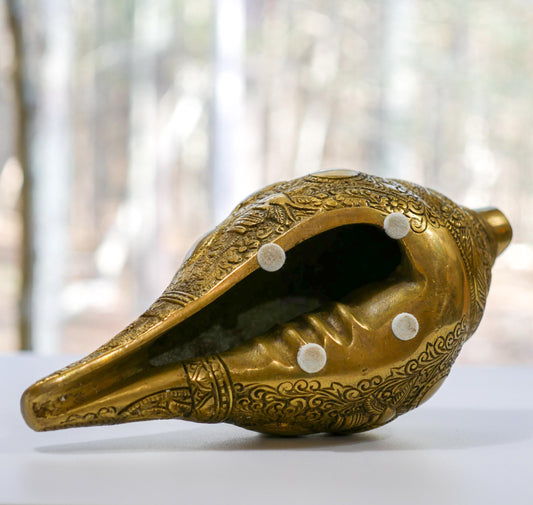 Vintage Brass Radha Krishna Shankh | Religious Hindu Trumpet Conch - 9.5" Long