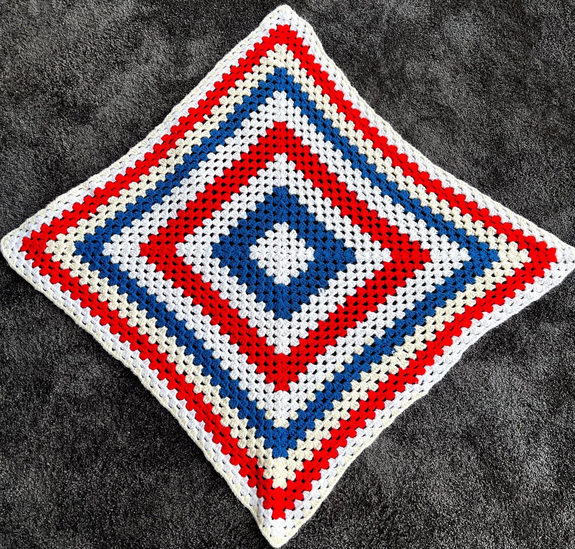 Vintage Handmade Square Granny Afghan Crochet Sofa Blanket Throw - 34"x34"