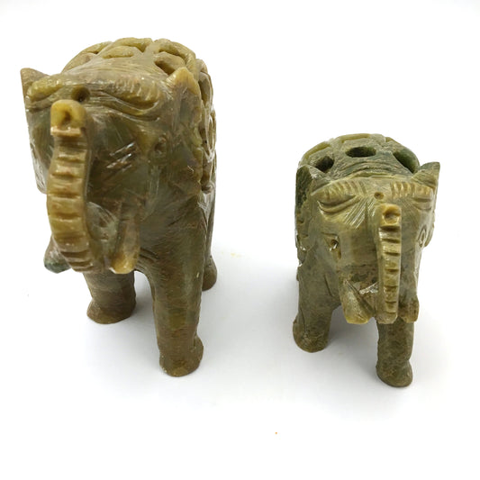 Pair Soapstone Elephants India Handcrafted with Inside Baby Elephant - Green