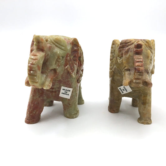 Pair Soapstone Elephants India Handcrafted Trunk Up Statue- Fine Lovely Detail