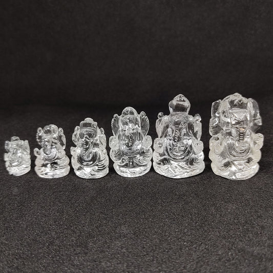 Crystal Quartz Ganesh Statue - Spiritual Blessing Healing Figurine - Size Variation