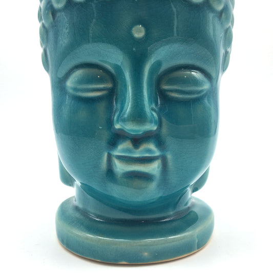 Ceramic Crackle Glaze Buddhism ShakyaMuni Buddha Head Sculpture Statue 6.5"