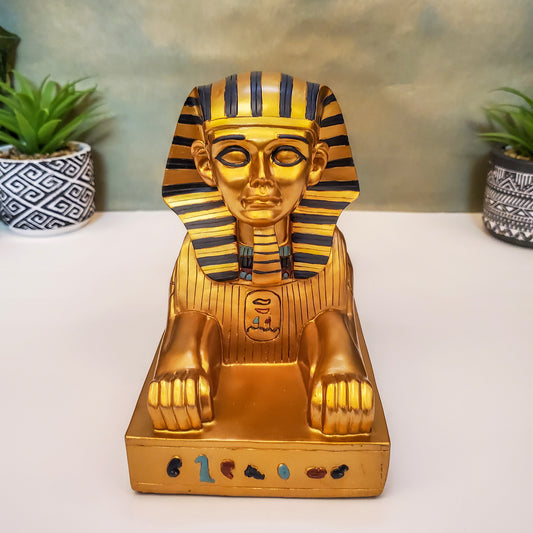 Egyptian Sphinx of Giza Large Gold and Blue Vintage Sphinx Altar Statue 11.5" Long