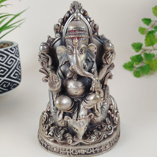 Vintage Ganesh Ji India Elephant God Altar Statue Handmade White Brass 6.75"