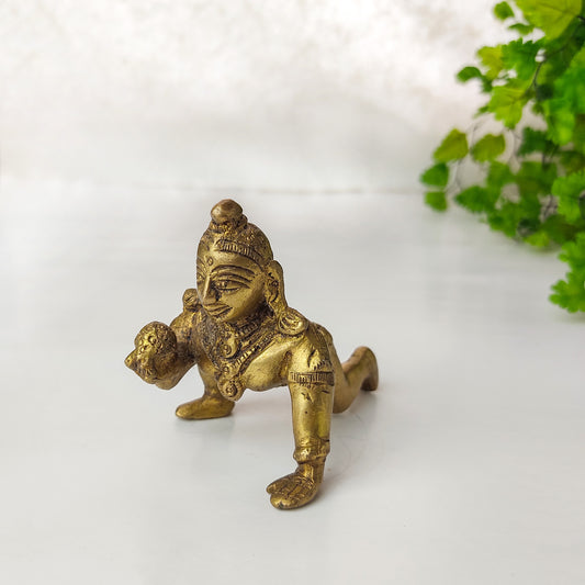 Baby Krishna Brass Deity Murti 3.5" Long Handmade Laddhu Gopal God Statue