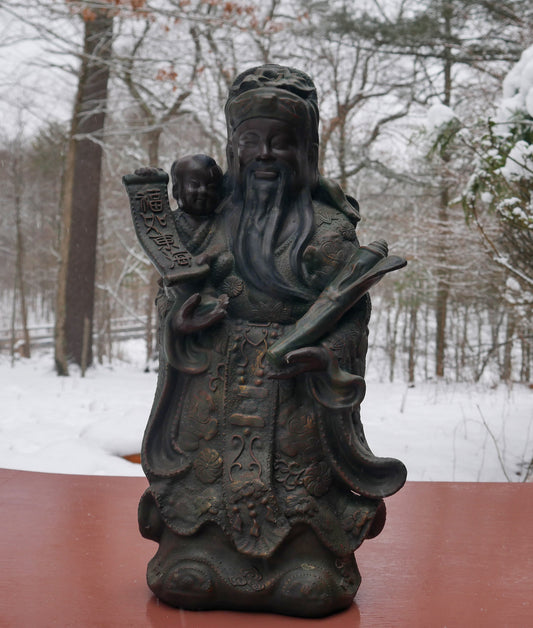 Chinese Ceramic Fu Lu Shou Longevity God Old Wise Man Statue Sculpture 19" Tall