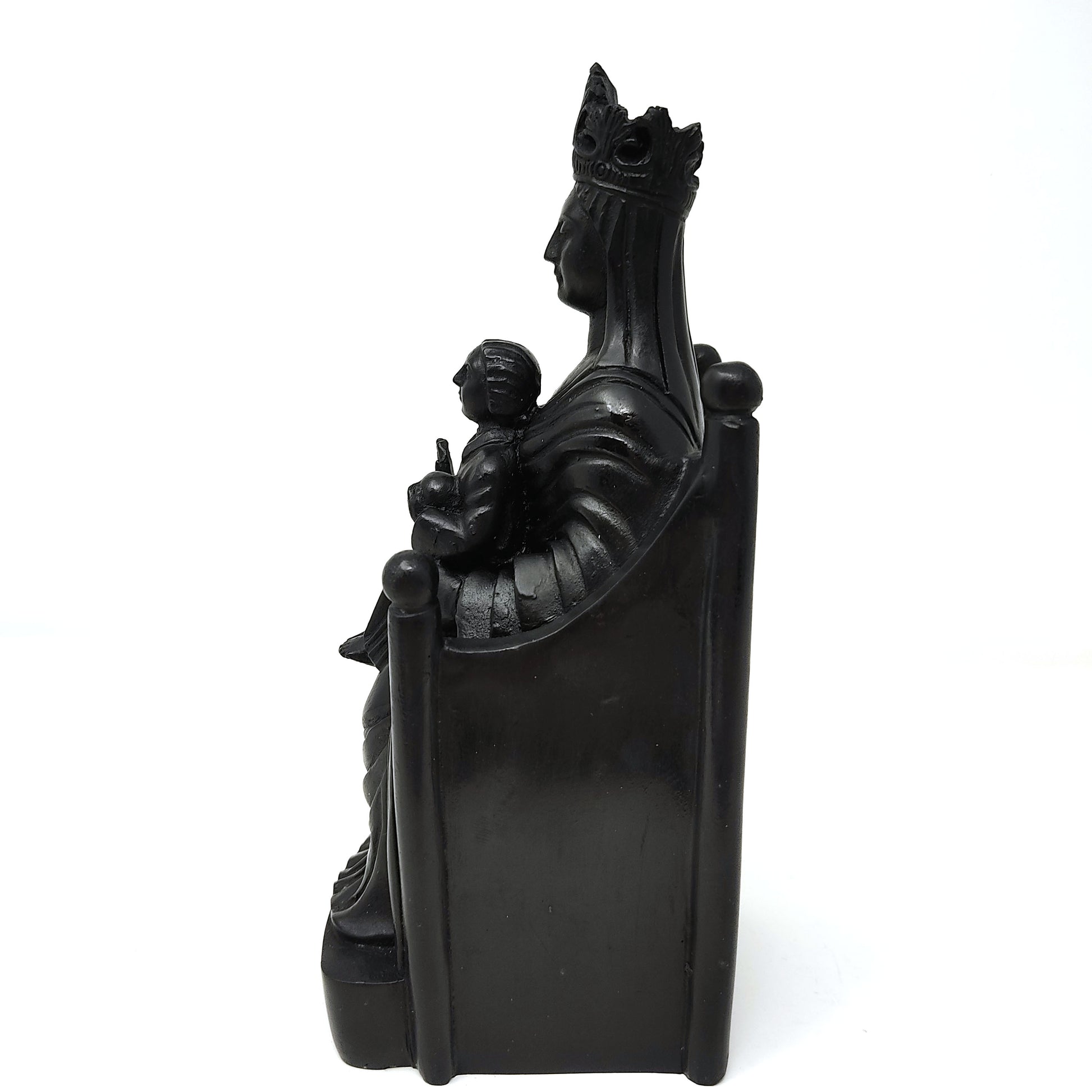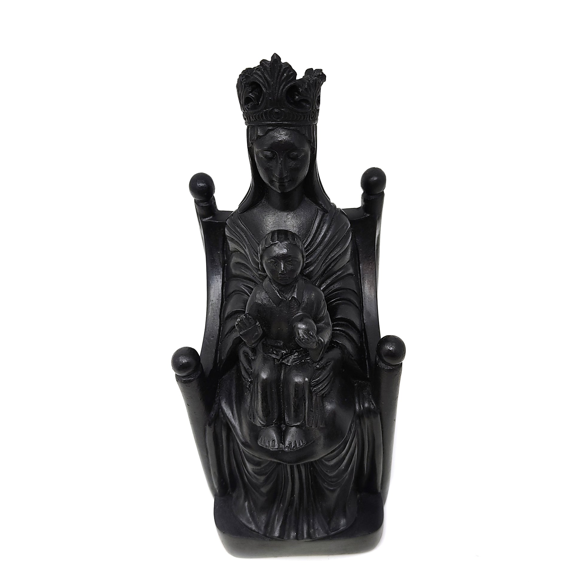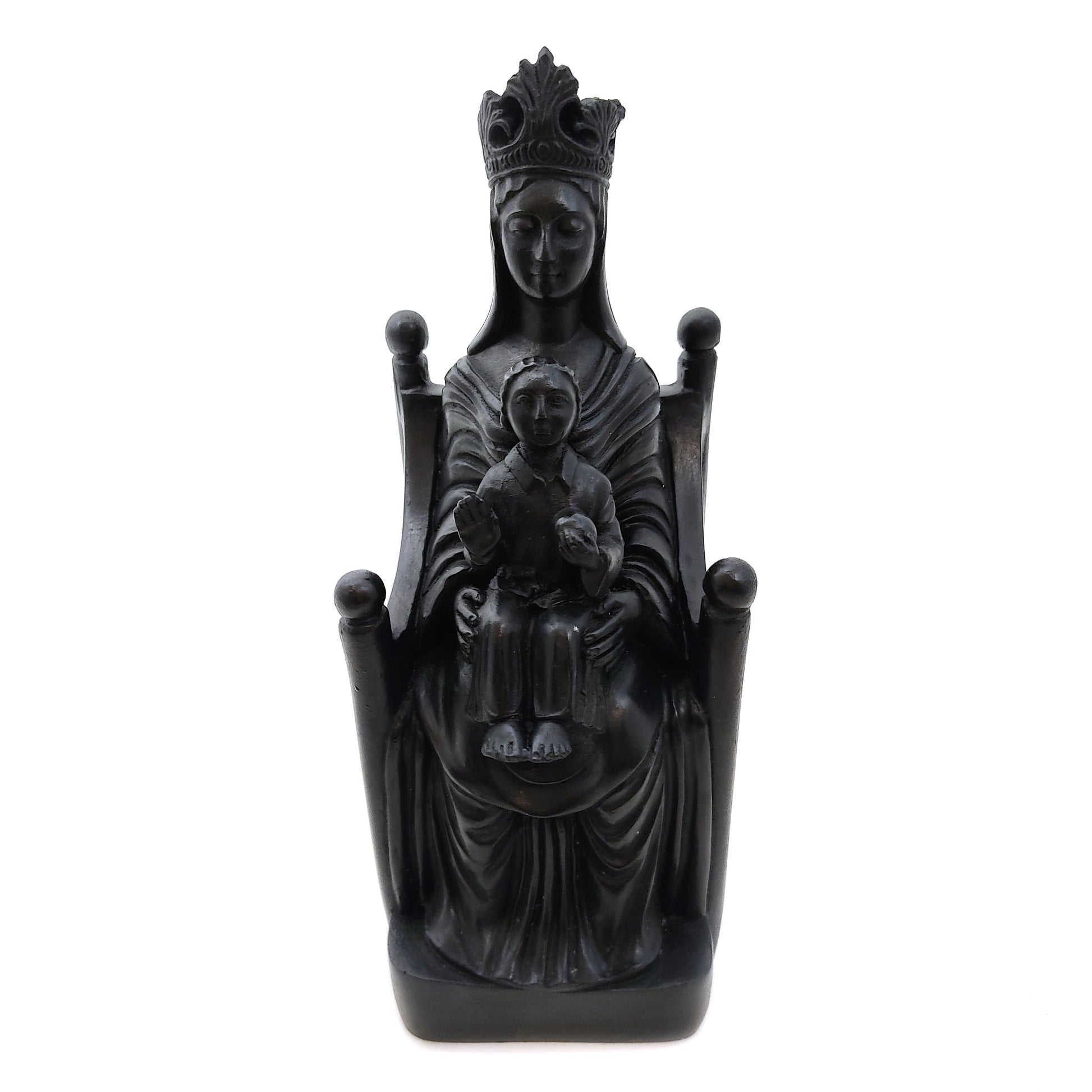 This Beautiful Black Madonna with Child is A Skillfully Handmade Hand-painted Resin Statue Idol with Black Color Finish. She Makes A Gift of Love, To Ones' Altar, As Spiritual Inspirational Decor, Housewarming Gift, or A Blessed Gift To Occasion of Choice (Wedding, Anniversary...)
