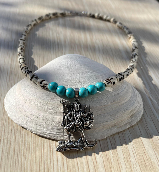 Kali Maa Necklace | Handmade Hinduism Goddess Turquoise Jewelry Gift - 19.5" Long