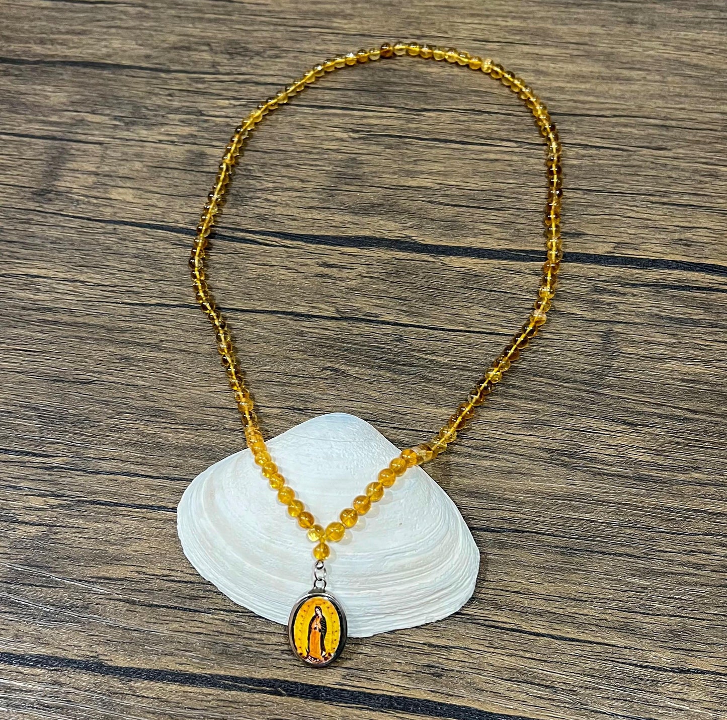 Our Lady of Guadalupe Citrine Pendant Necklace | Handmade Spiritual Jewelry Gift
