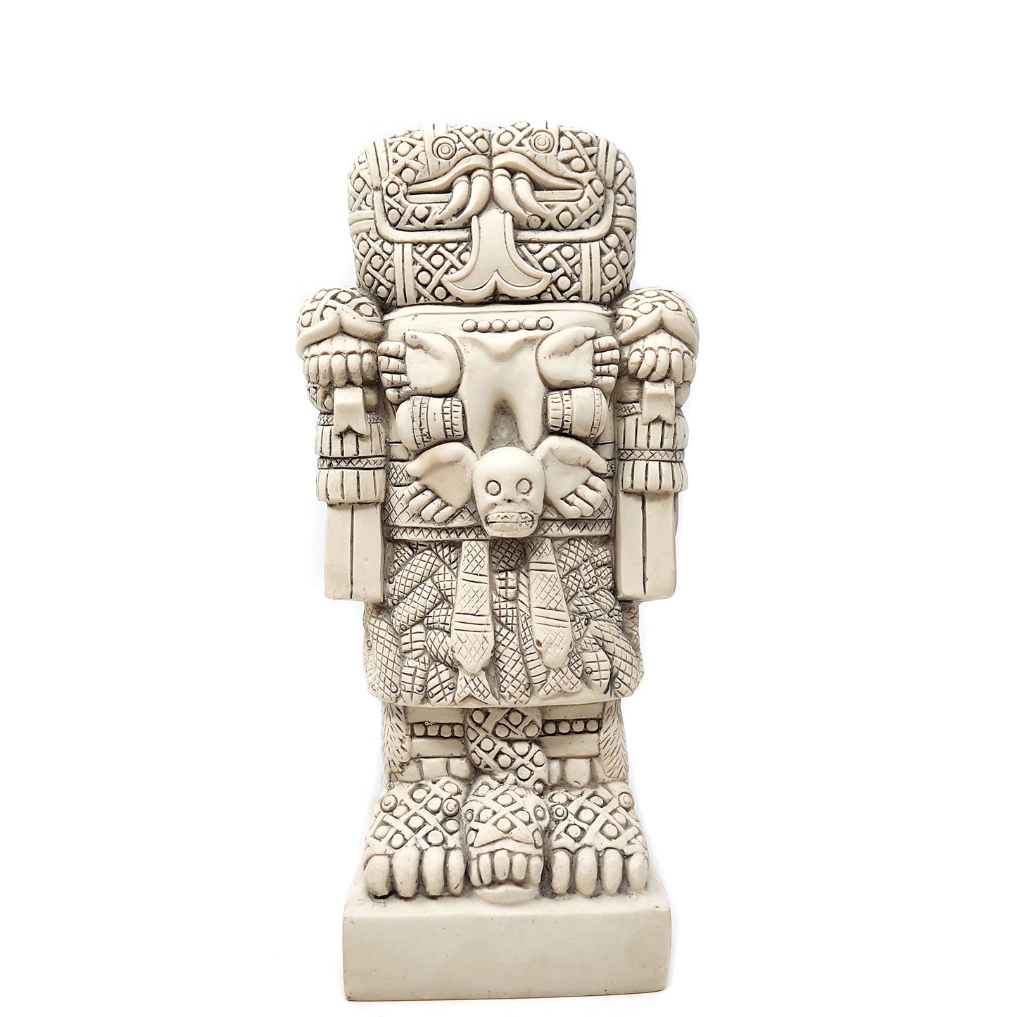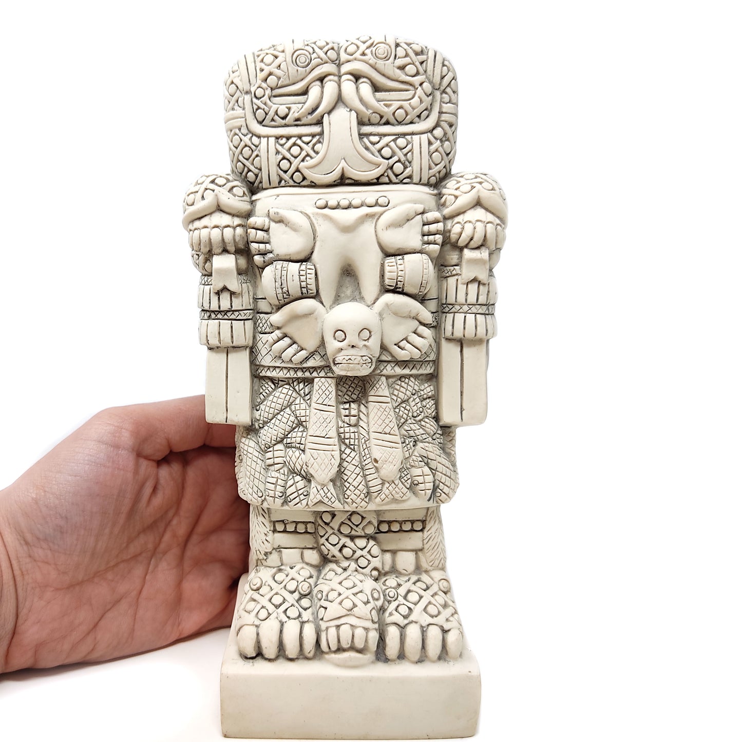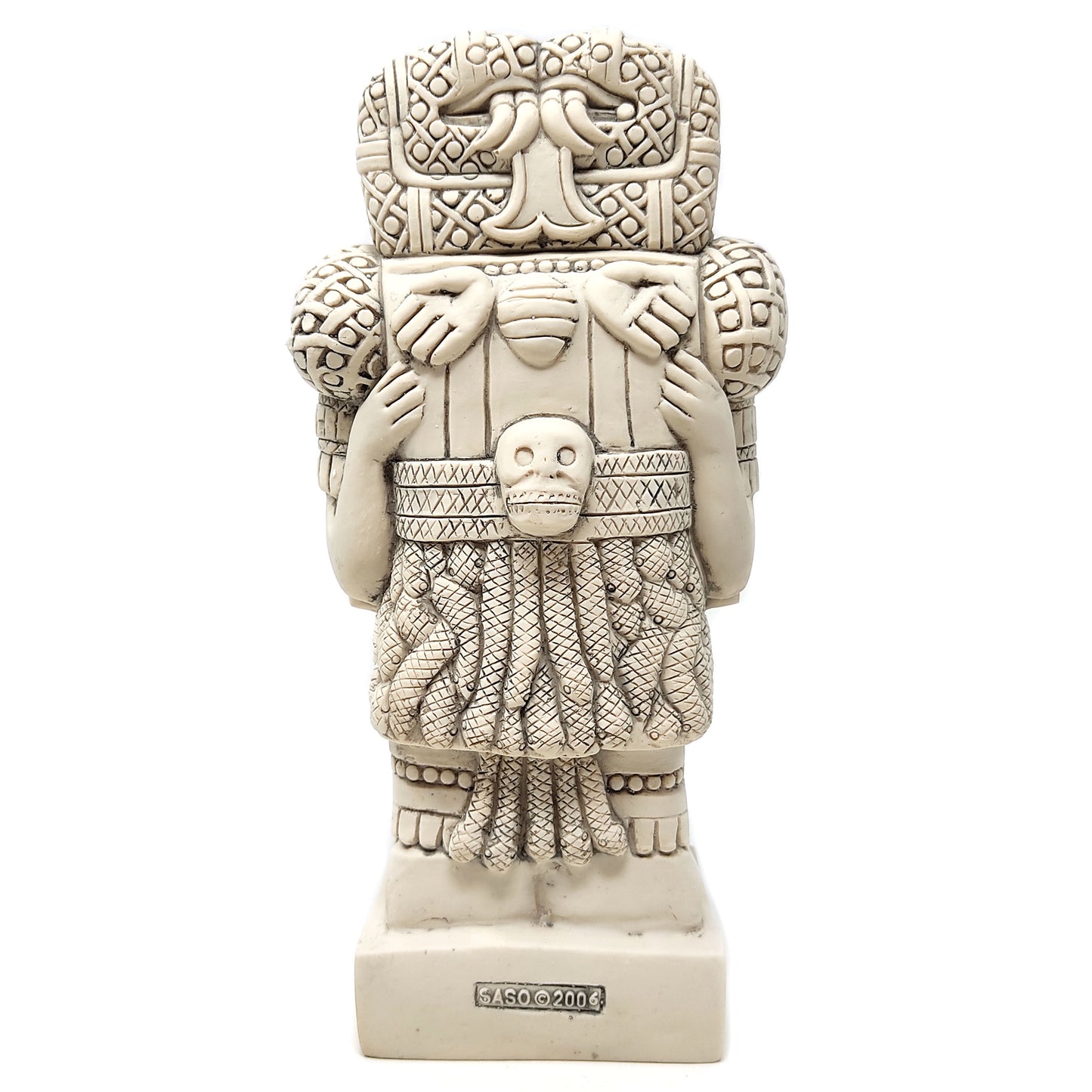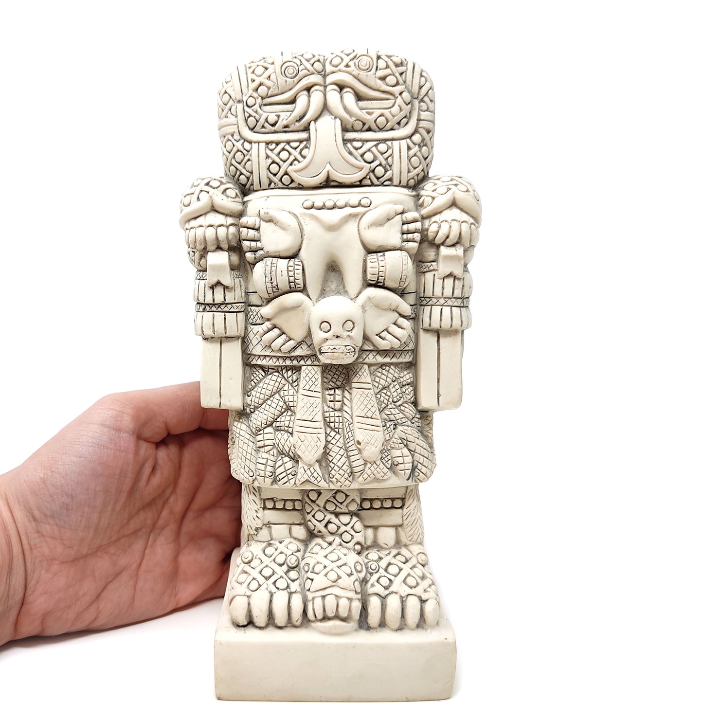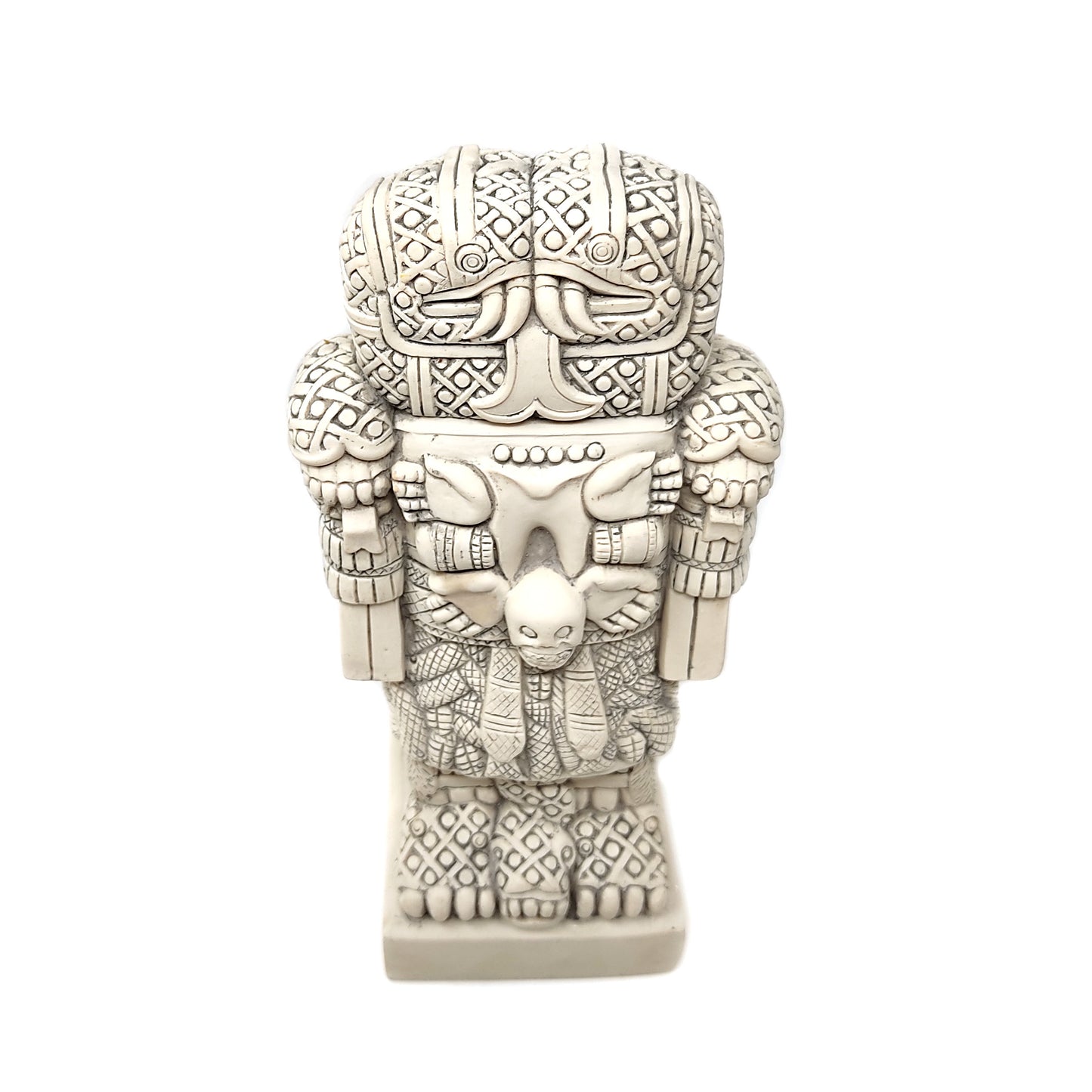 Handmade Resin Statue with Antique Stone Color Finish - Coatlicue Mexico Spirituality Aztec Mythology Replica Statue 8.25"