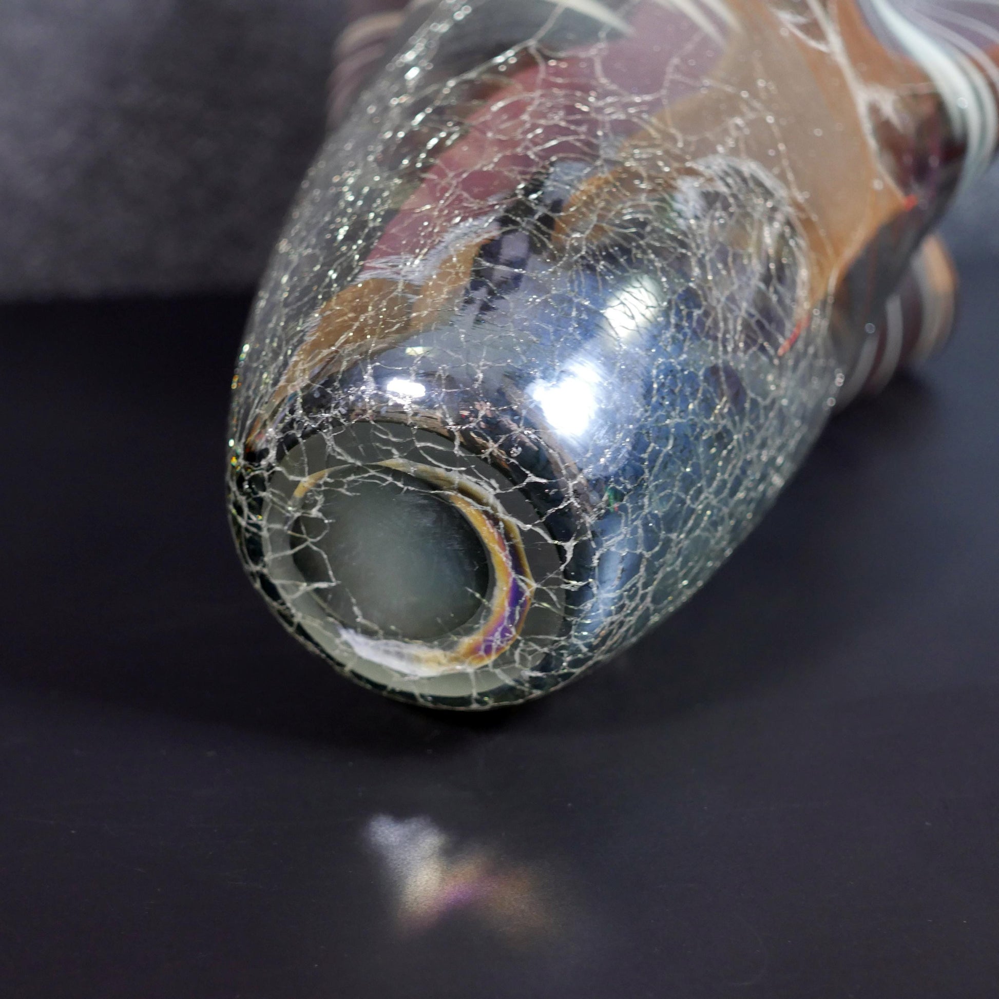 Vintage Large Hand-Blown Art Ruffled Rim Crackle Glass Vase - 13" Tall